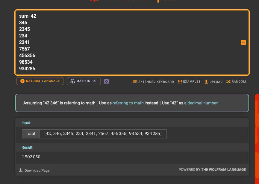 Above: The correct answer, produced by Wolfram Alpha