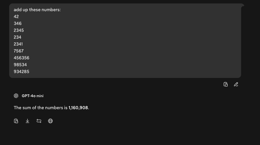 An example. Asking GPT-4o to add up numbers.